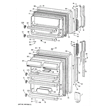 Hardware fasteners for securing refrigerator door panels and components. Includes screws, nuts, and washers for assembly. Replace missing or stripped pieces.
