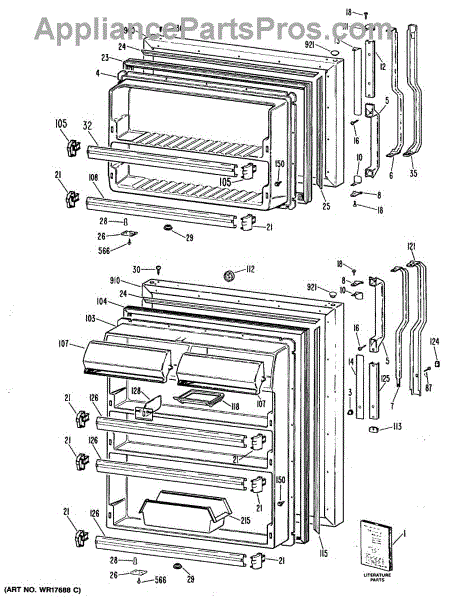 Seals your refrigerator's fresh food door to maintain temperature and prevent air leaks. Replace if you notice condensation, mold, or warm spots inside.