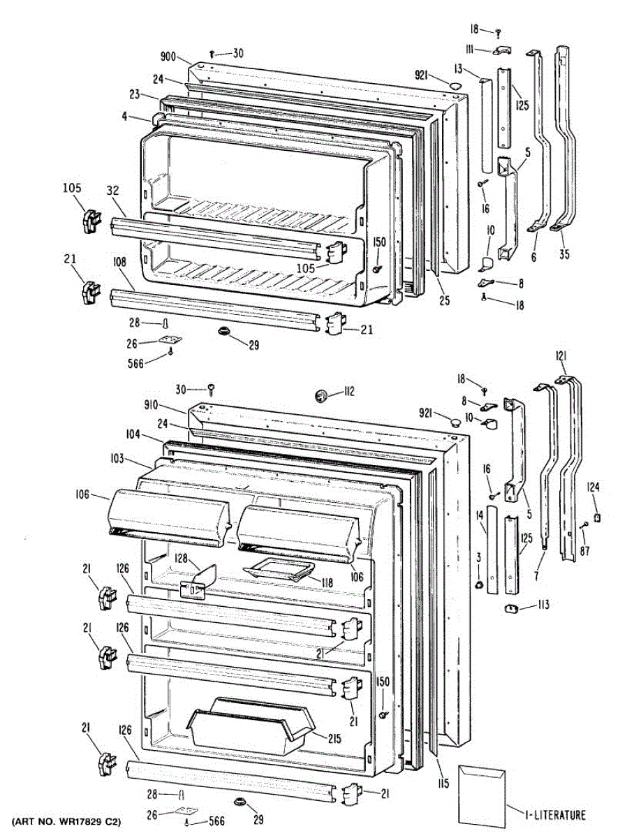 Hardware fasteners for securing refrigerator door panels and components. Includes screws, nuts, and washers for assembly. Replace missing or stripped pieces.