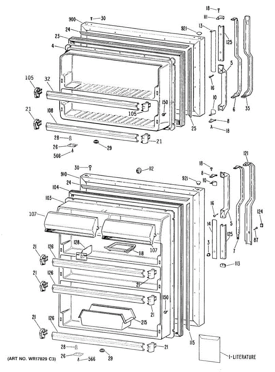 Hardware fasteners for securing refrigerator door panels and components. Includes screws, nuts, and washers for assembly. Replace missing or stripped pieces.