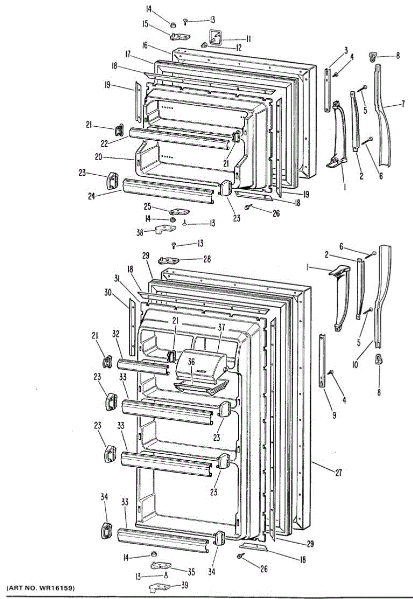 Hardware fasteners for securing refrigerator door panels and components. Includes screws, nuts, and washers for assembly. Replace missing or stripped pieces.