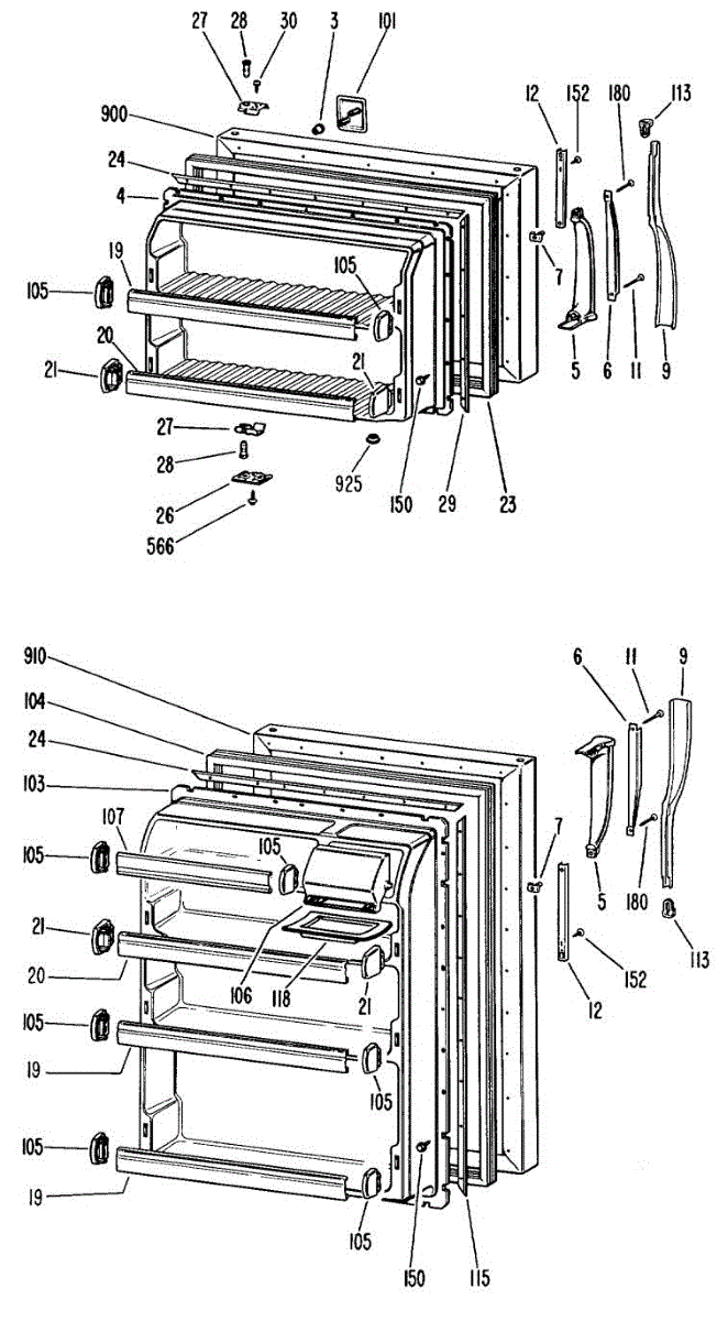 Hardware fasteners for securing refrigerator door panels and components. Includes screws, nuts, and washers for assembly. Replace missing or stripped pieces.