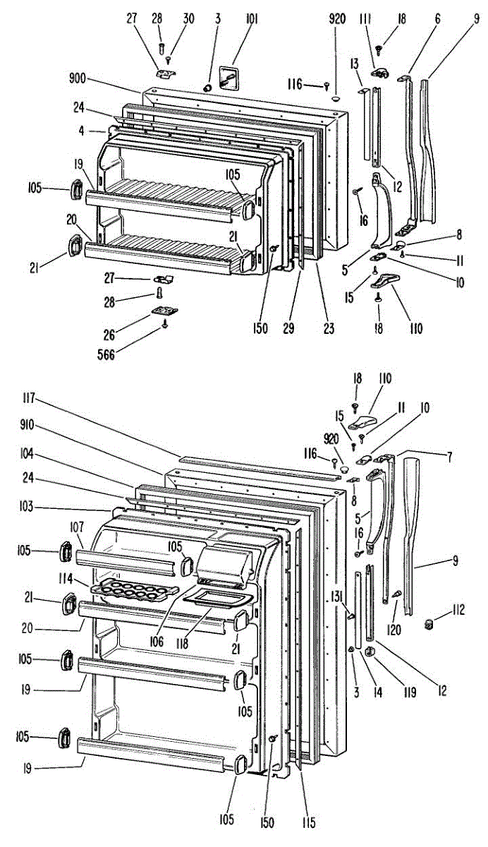 Hardware fasteners for securing refrigerator door panels and components. Includes screws, nuts, and washers for assembly. Replace missing or stripped pieces.
