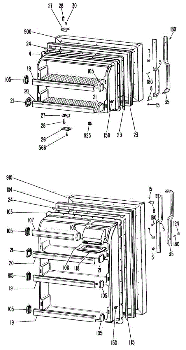 Mounting screw for refrigerator assembly and component attachment. Replace missing, stripped, or corroded screws during repair or maintenance work.