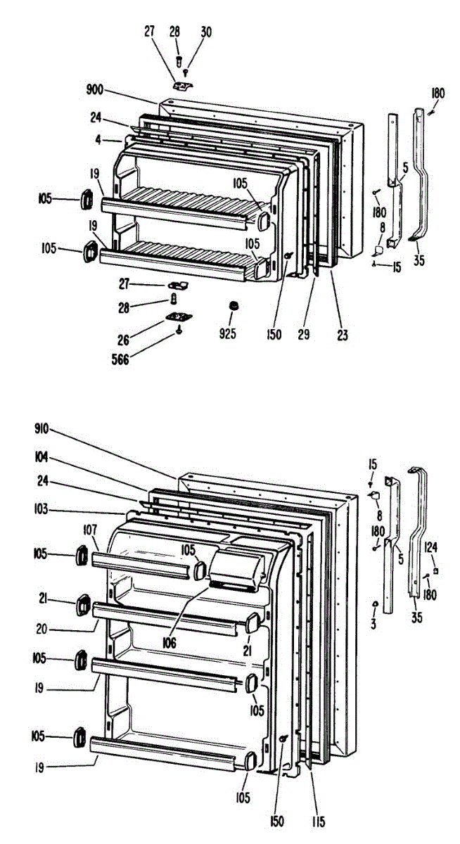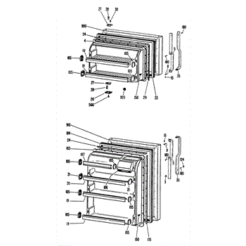 Hardware fasteners for securing refrigerator door panels and components. Includes screws, nuts, and washers for assembly. Replace missing or stripped pieces.
