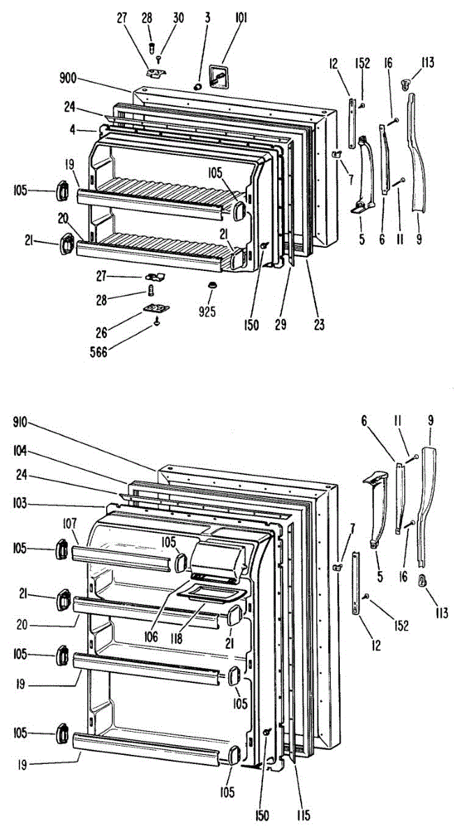 Hardware fasteners for securing refrigerator door panels and components. Includes screws, nuts, and washers for assembly. Replace missing or stripped pieces.