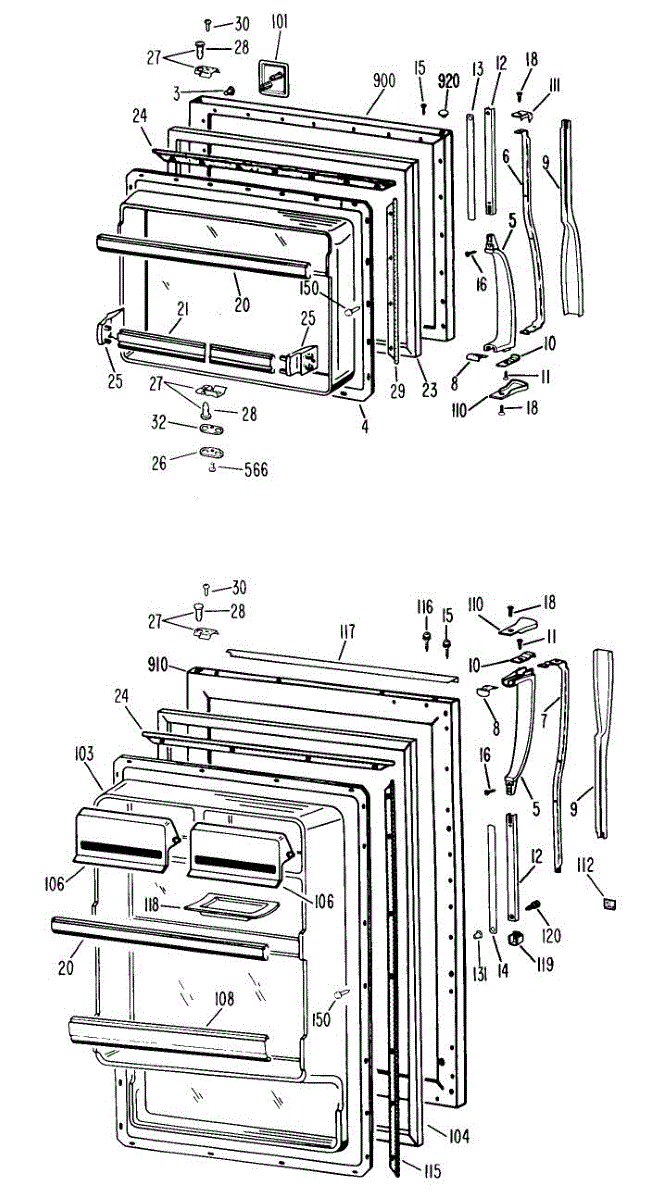 Hardware fasteners for securing refrigerator door panels and components. Includes screws, nuts, and washers for assembly. Replace missing or stripped pieces.