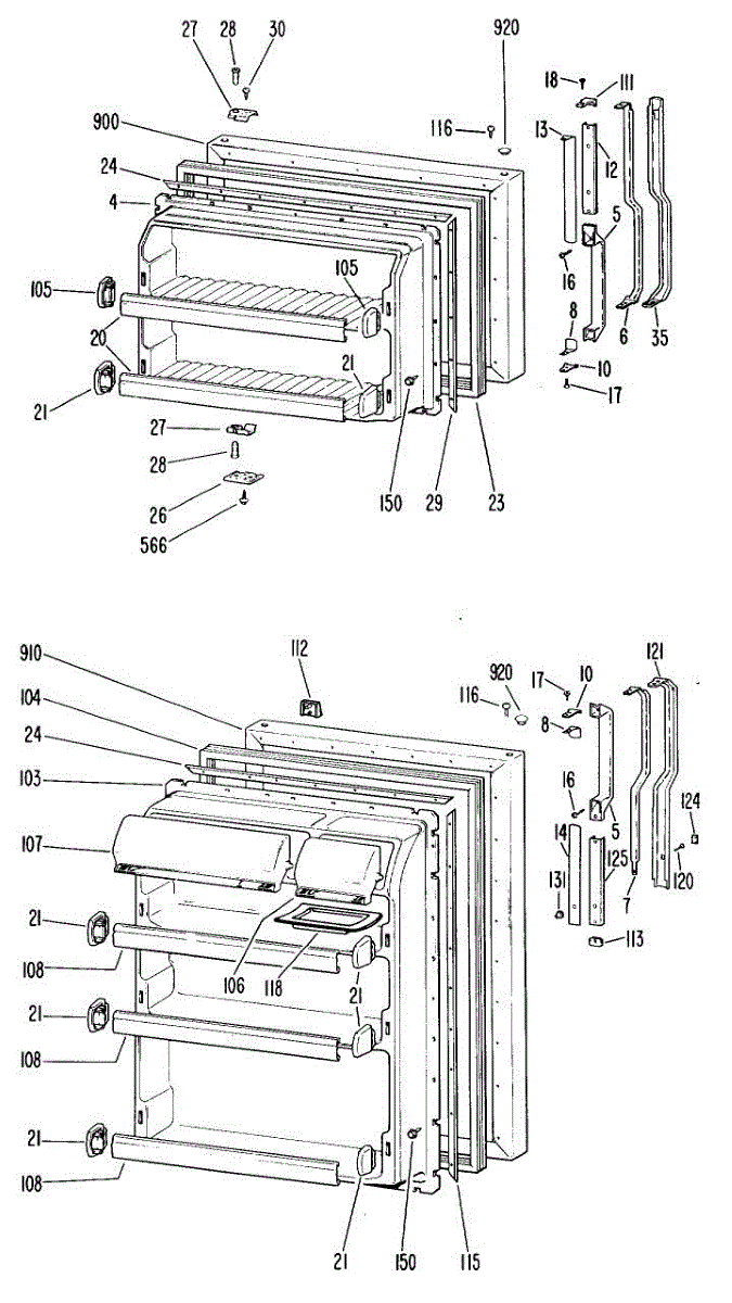 Hardware fasteners for securing refrigerator door panels and components. Includes screws, nuts, and washers for assembly. Replace missing or stripped pieces.