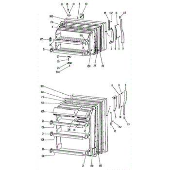 Hardware fasteners for securing refrigerator door panels and components. Includes screws, nuts, and washers for assembly. Replace missing or stripped pieces.