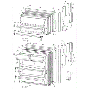 Hardware fasteners for securing refrigerator door panels and components. Includes screws, nuts, and washers for assembly. Replace missing or stripped pieces.