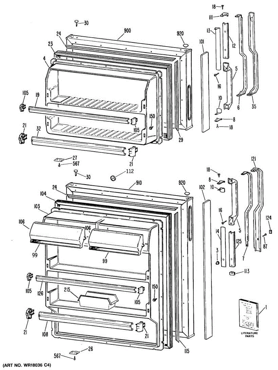 Hardware fasteners for securing refrigerator door panels and components. Includes screws, nuts, and washers for assembly. Replace missing or stripped pieces.