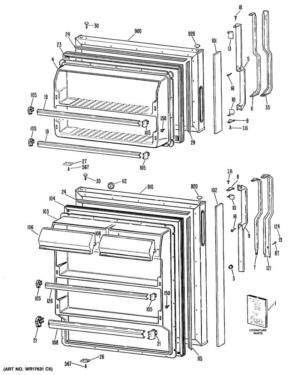 Hardware fasteners for securing refrigerator door panels and components. Includes screws, nuts, and washers for assembly. Replace missing or stripped pieces.