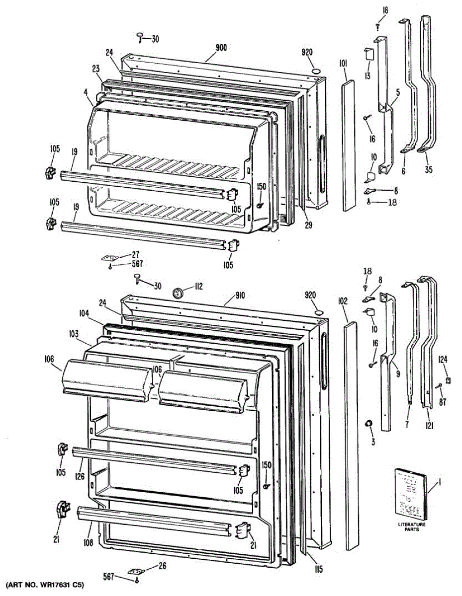 Hardware fasteners for securing refrigerator door panels and components. Includes screws, nuts, and washers for assembly. Replace missing or stripped pieces.