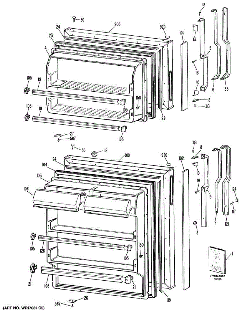 Hardware fasteners for securing refrigerator door panels and components. Includes screws, nuts, and washers for assembly. Replace missing or stripped pieces.