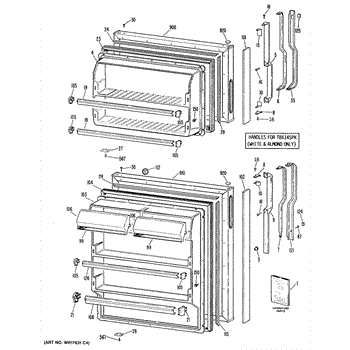 Hardware fasteners for securing refrigerator door panels and components. Includes screws, nuts, and washers for assembly. Replace missing or stripped pieces.