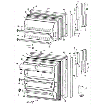 Hardware fasteners for securing refrigerator door panels and components. Includes screws, nuts, and washers for assembly. Replace missing or stripped pieces.