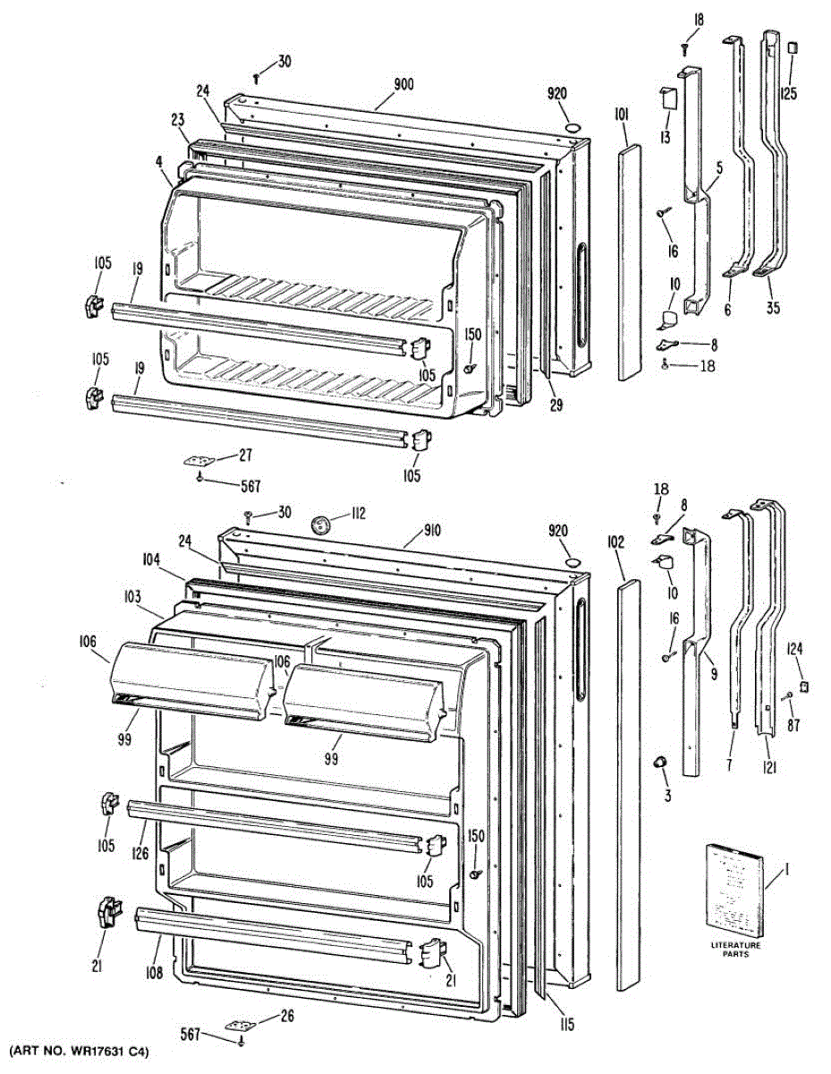 Hardware fasteners for securing refrigerator door panels and components. Includes screws, nuts, and washers for assembly. Replace missing or stripped pieces.