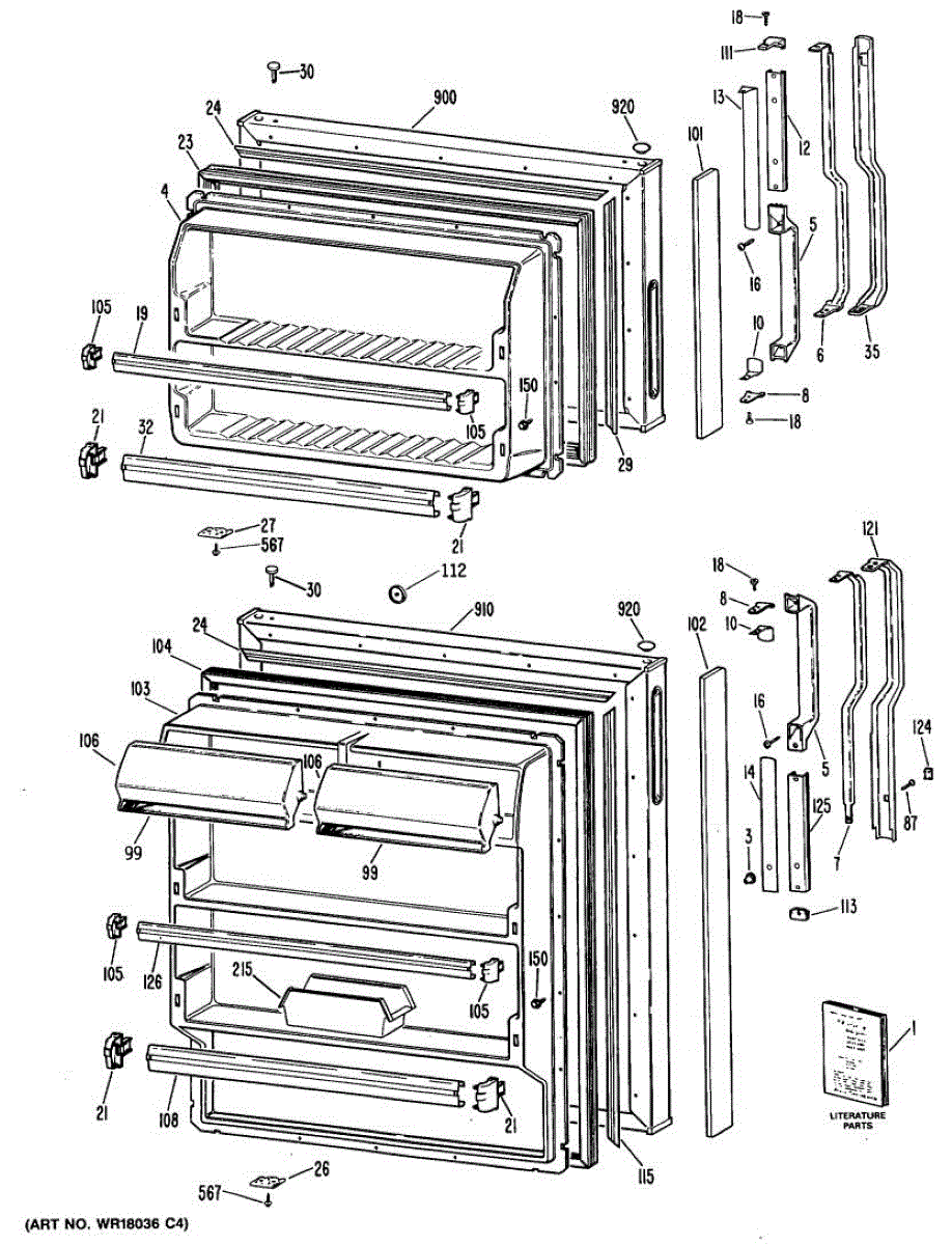 Hardware fasteners for securing refrigerator door panels and components. Includes screws, nuts, and washers for assembly. Replace missing or stripped pieces.