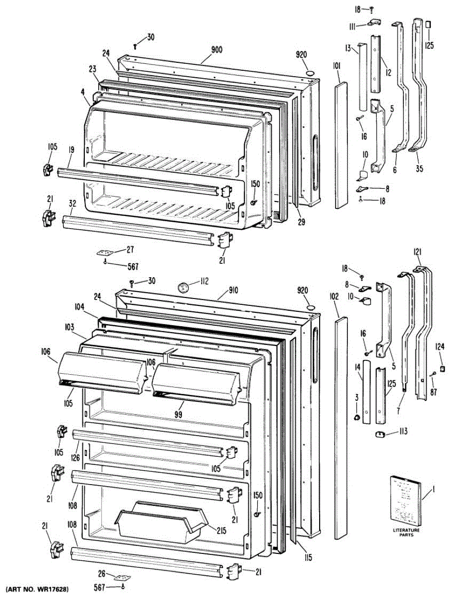 Hardware fasteners for securing refrigerator door panels and components. Includes screws, nuts, and washers for assembly. Replace missing or stripped pieces.