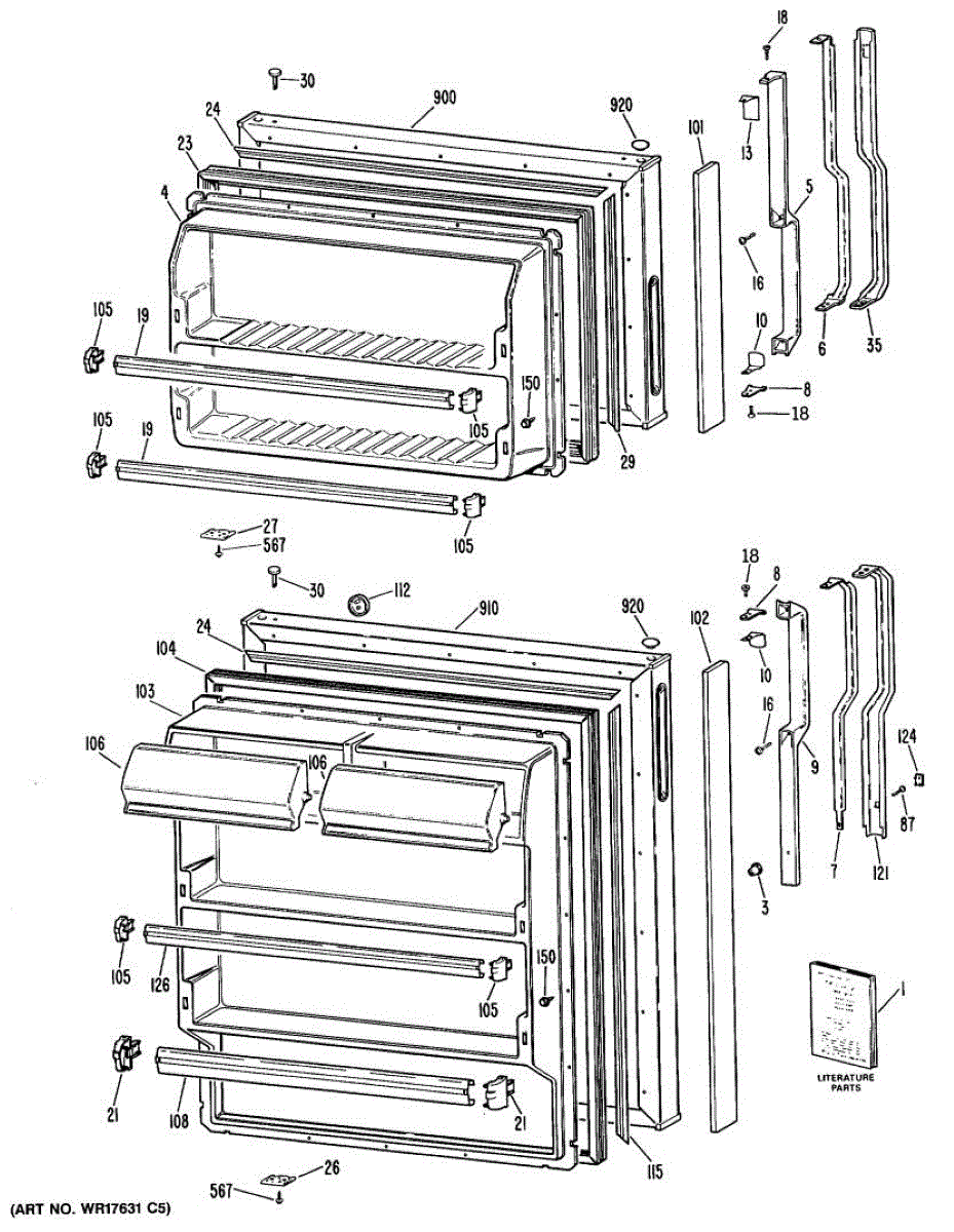 Hardware fasteners for securing refrigerator door panels and components. Includes screws, nuts, and washers for assembly. Replace missing or stripped pieces.