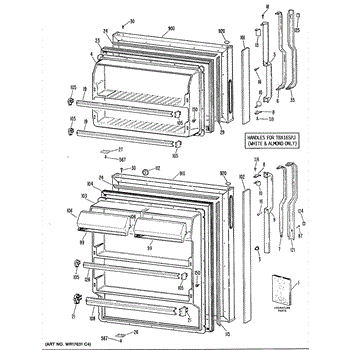 Hardware fasteners for securing refrigerator door panels and components. Includes screws, nuts, and washers for assembly. Replace missing or stripped pieces.