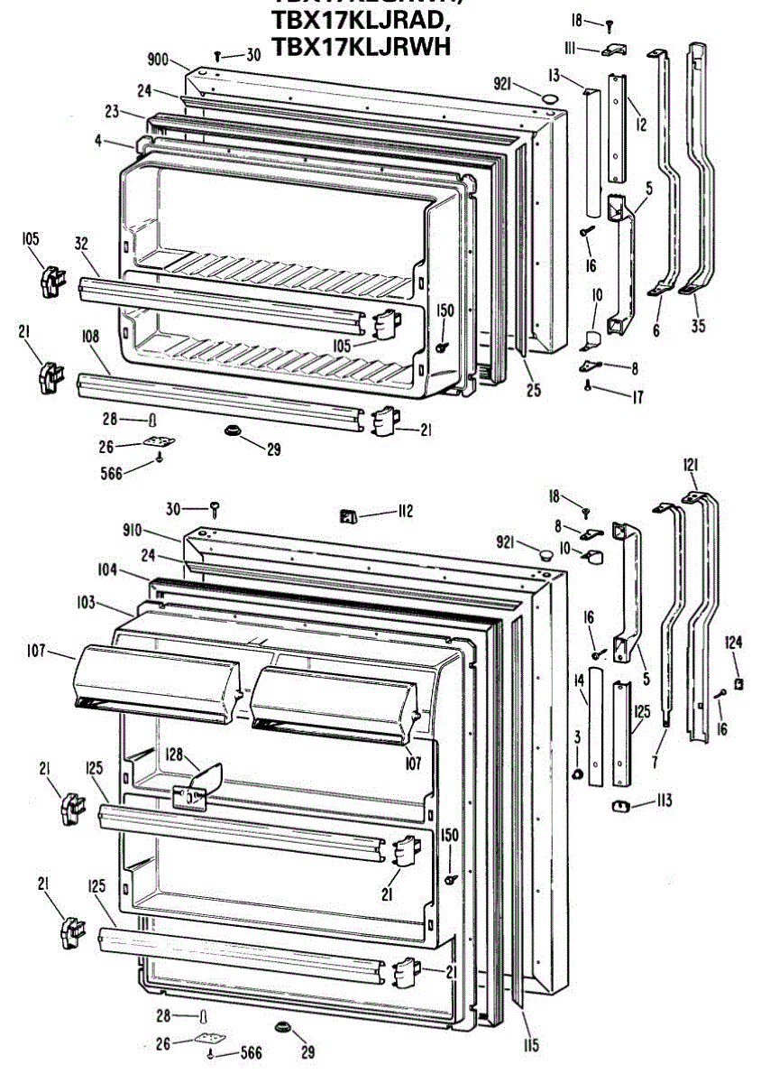Hardware fasteners for securing refrigerator door panels and components. Includes screws, nuts, and washers for assembly. Replace missing or stripped pieces.