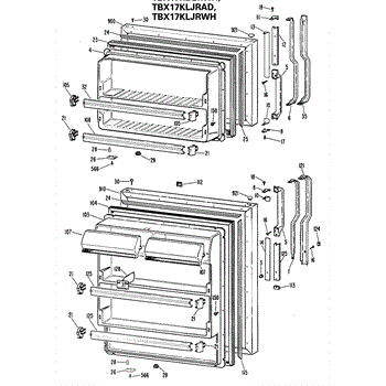 Hardware fasteners for securing refrigerator door panels and components. Includes screws, nuts, and washers for assembly. Replace missing or stripped pieces.