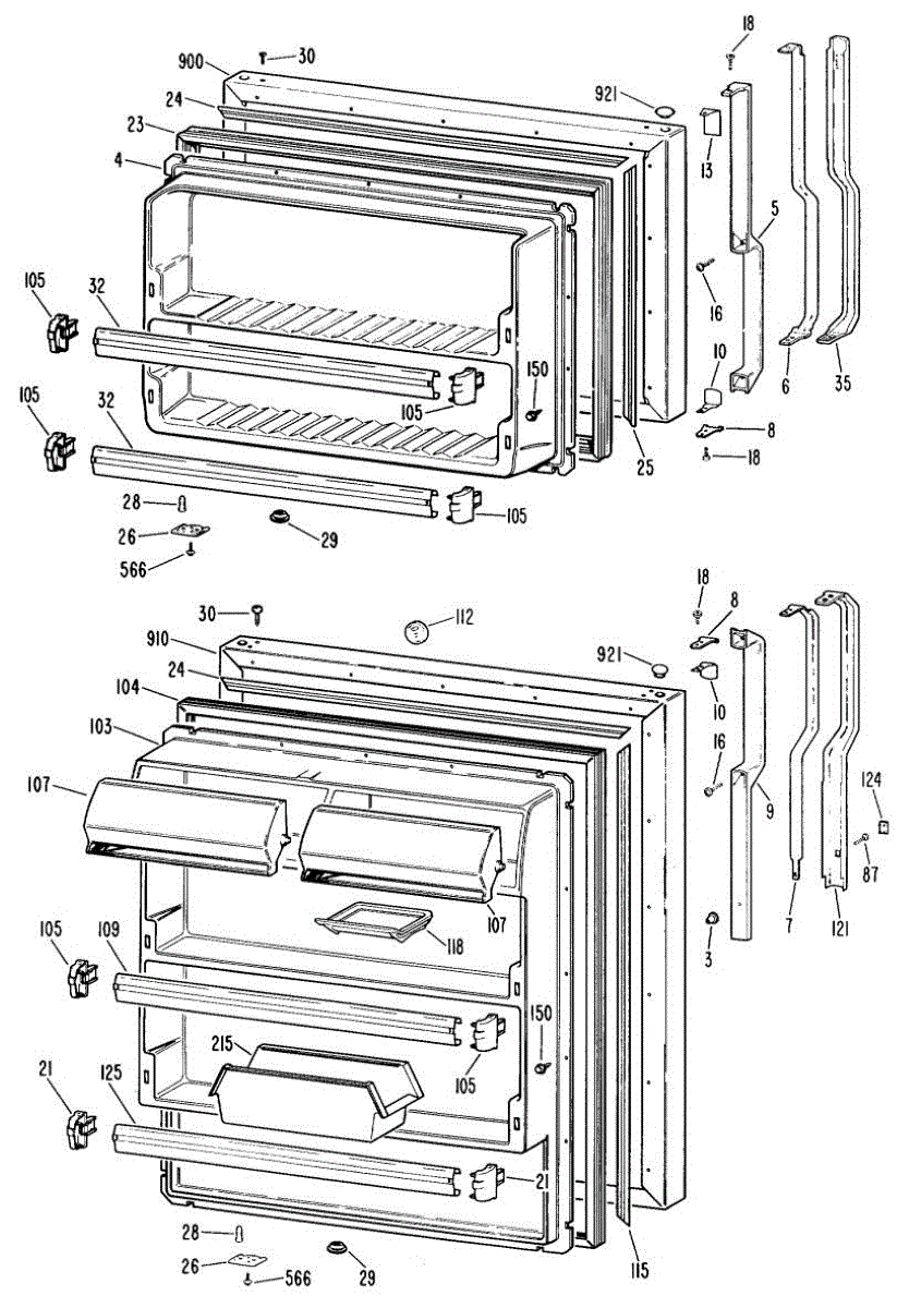 Hardware fasteners for securing refrigerator door panels and components. Includes screws, nuts, and washers for assembly. Replace missing or stripped pieces.