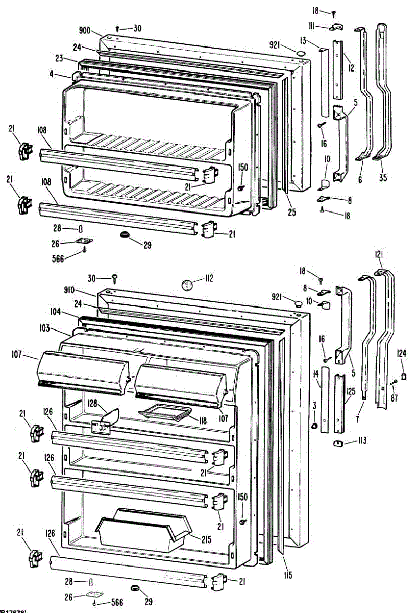 Hardware fasteners for securing refrigerator door panels and components. Includes screws, nuts, and washers for assembly. Replace missing or stripped pieces.