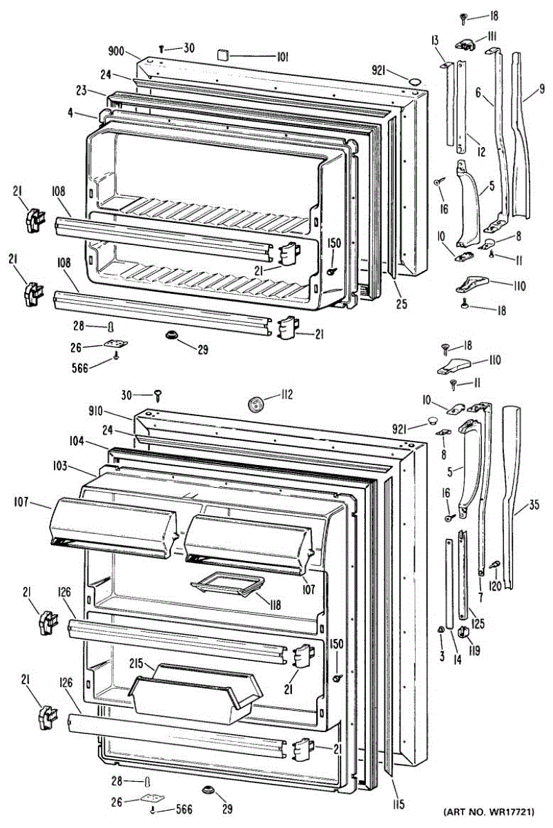 Hardware fasteners for securing refrigerator door panels and components. Includes screws, nuts, and washers for assembly. Replace missing or stripped pieces.