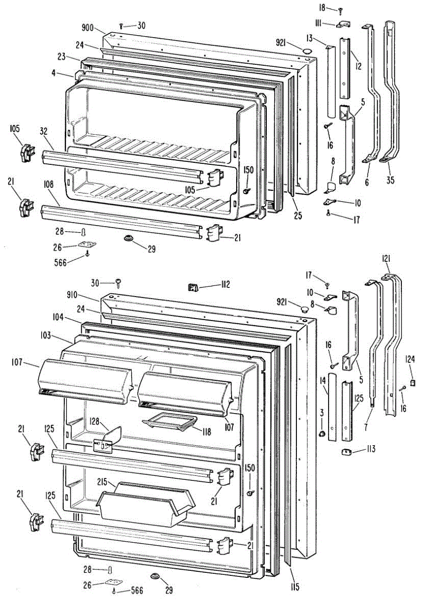 Hardware fasteners for securing refrigerator door panels and components. Includes screws, nuts, and washers for assembly. Replace missing or stripped pieces.