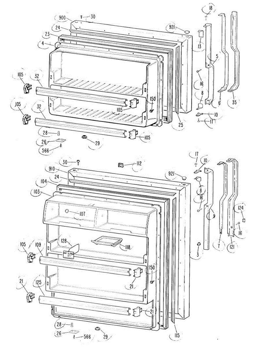Hardware fasteners for securing refrigerator door panels and components. Includes screws, nuts, and washers for assembly. Replace missing or stripped pieces.
