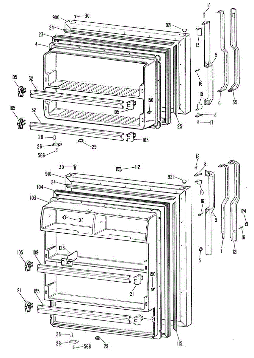 Hardware fasteners for securing refrigerator door panels and components. Includes screws, nuts, and washers for assembly. Replace missing or stripped pieces.