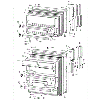 Hardware fasteners for securing refrigerator door panels and components. Includes screws, nuts, and washers for assembly. Replace missing or stripped pieces.