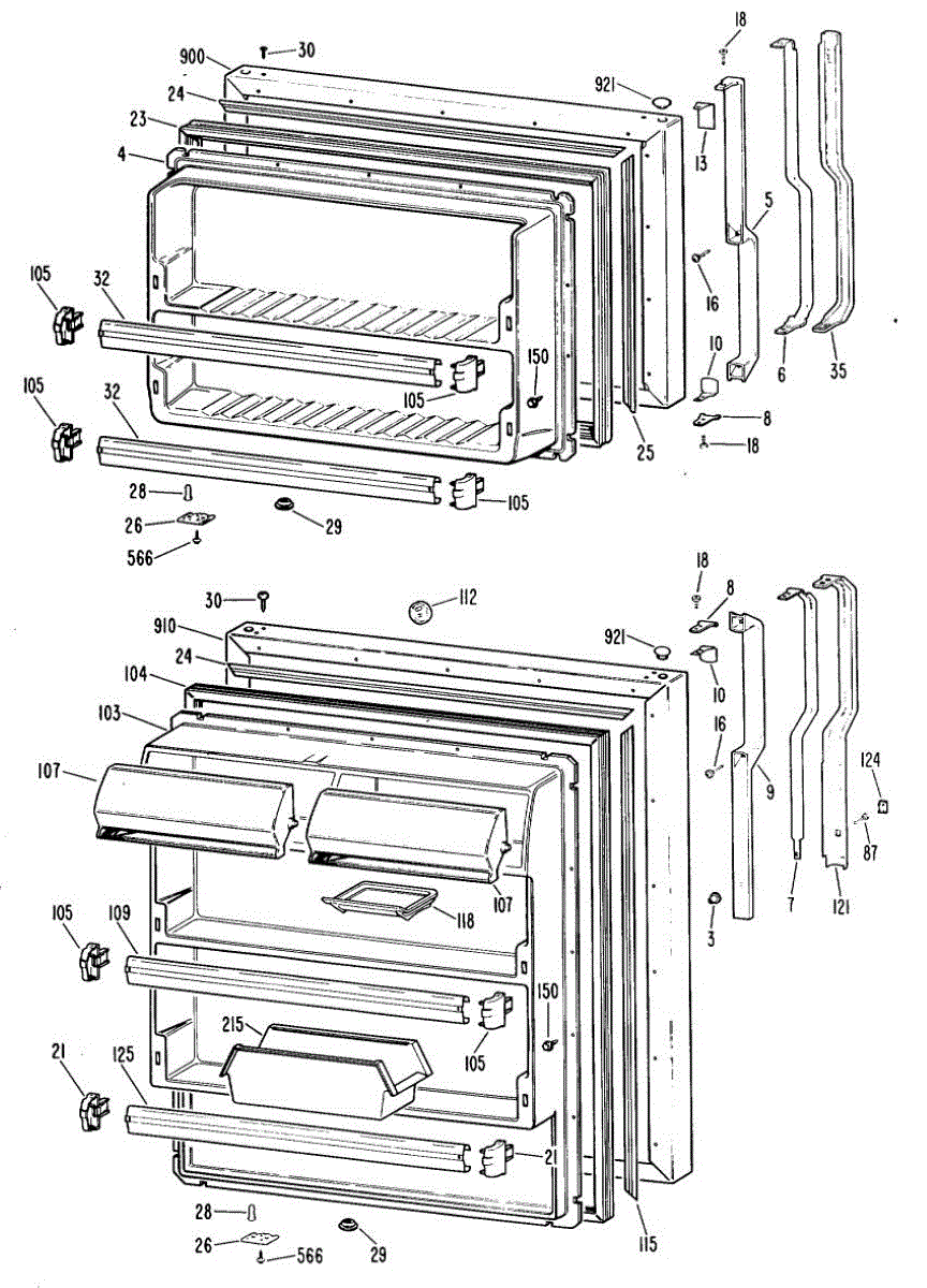 Hardware fasteners for securing refrigerator door panels and components. Includes screws, nuts, and washers for assembly. Replace missing or stripped pieces.