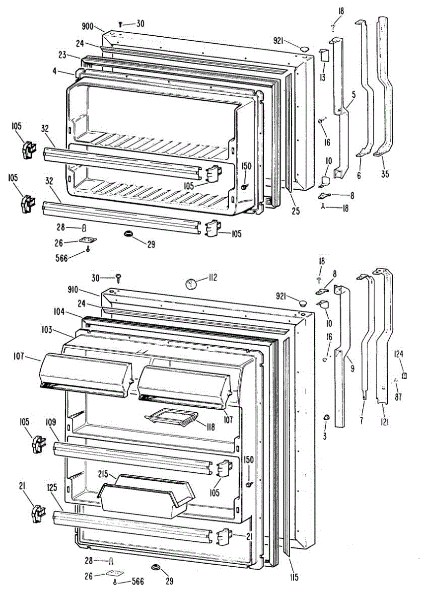 Hardware fasteners for securing refrigerator door panels and components. Includes screws, nuts, and washers for assembly. Replace missing or stripped pieces.
