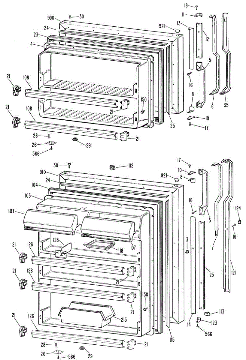 Hardware fasteners for securing refrigerator door panels and components. Includes screws, nuts, and washers for assembly. Replace missing or stripped pieces.