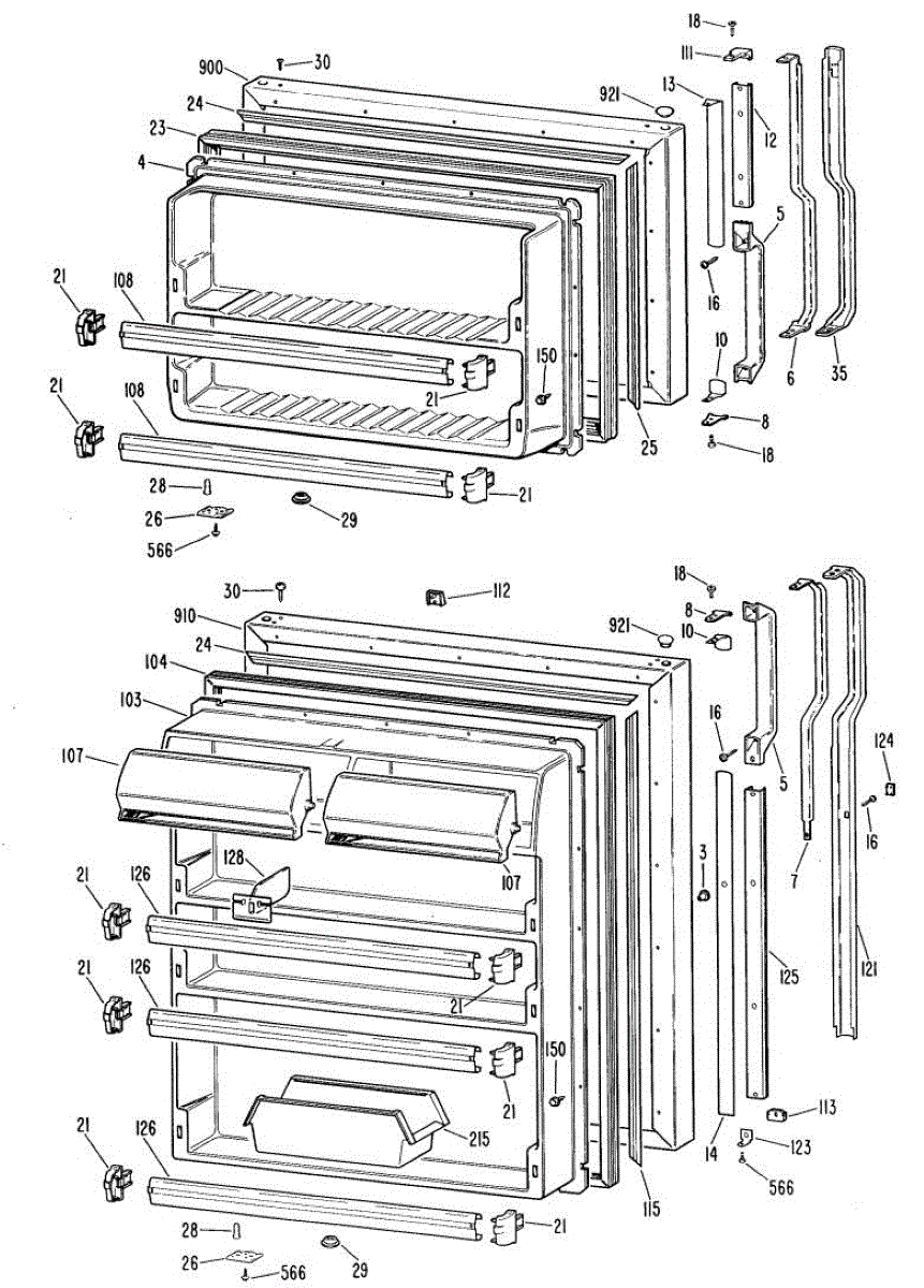 Hardware fasteners for securing refrigerator door panels and components. Includes screws, nuts, and washers for assembly. Replace missing or stripped pieces.