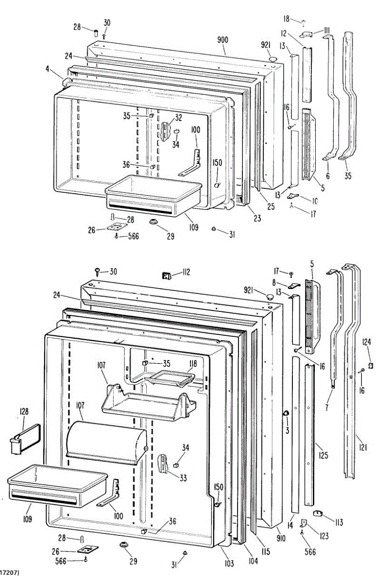 Hardware fasteners for securing refrigerator door panels and components. Includes screws, nuts, and washers for assembly. Replace missing or stripped pieces.