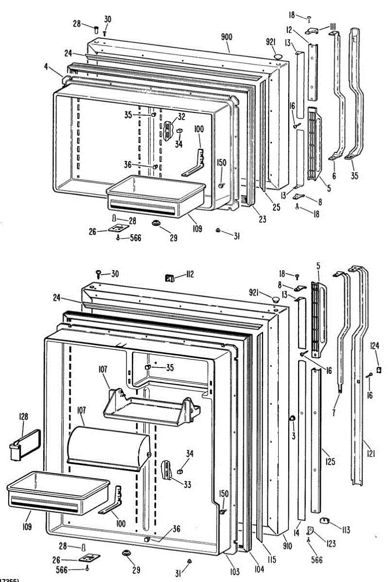 Hardware fasteners for securing refrigerator door panels and components. Includes screws, nuts, and washers for assembly. Replace missing or stripped pieces.