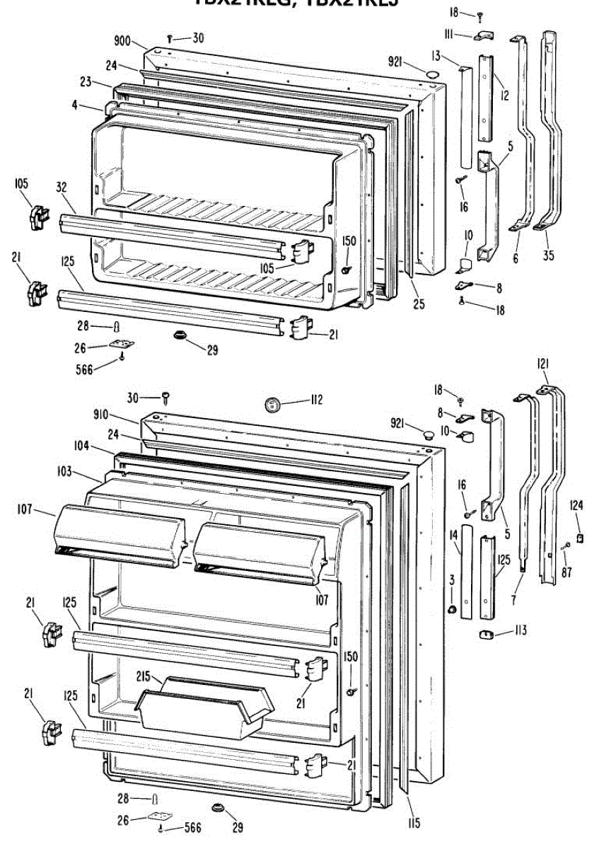 Hardware fasteners for securing refrigerator door panels and components. Includes screws, nuts, and washers for assembly. Replace missing or stripped pieces.