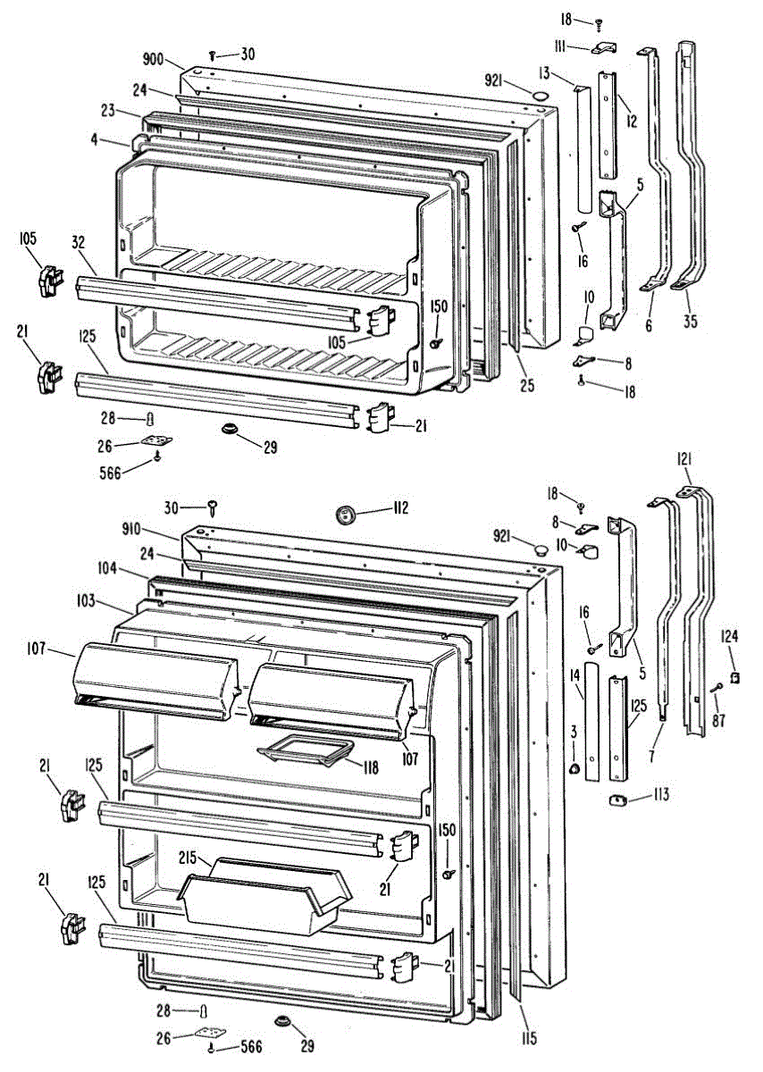 Hardware fasteners for securing refrigerator door panels and components. Includes screws, nuts, and washers for assembly. Replace missing or stripped pieces.