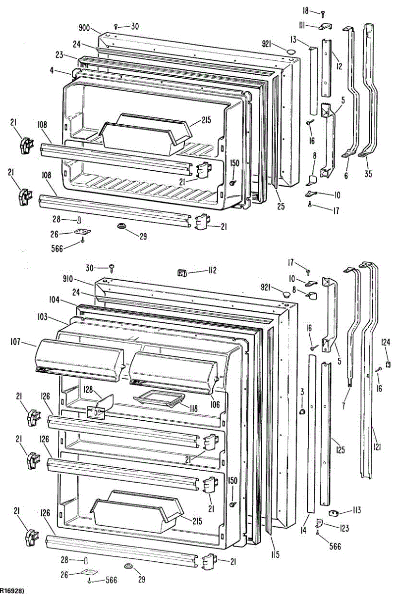 Hardware fasteners for securing refrigerator door panels and components. Includes screws, nuts, and washers for assembly. Replace missing or stripped pieces.