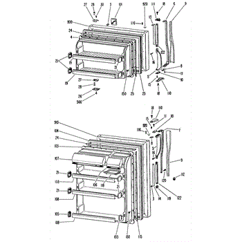 Hardware fasteners for securing refrigerator door panels and components. Includes screws, nuts, and washers for assembly. Replace missing or stripped pieces.