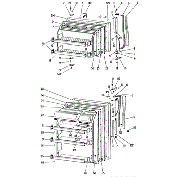 Hardware fasteners for securing refrigerator door panels and components. Includes screws, nuts, and washers for assembly. Replace missing or stripped pieces.