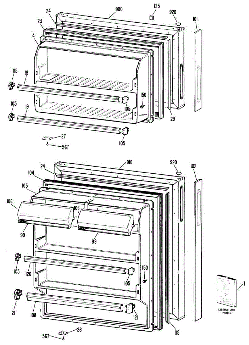 Replacement dairy compartment door for refrigerator door storage. Needed when original is cracked, broken, or missing. Installs in door compartment.
