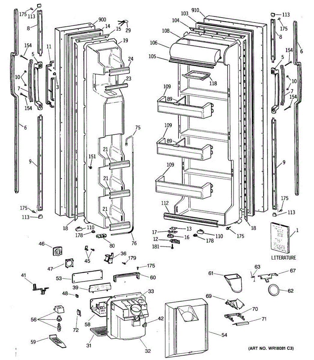 Ice dispenser door assembly seals the ice chute opening on your refrigerator. Replace if cracked, warped, or the rubber gasket is damaged and leaking air.
