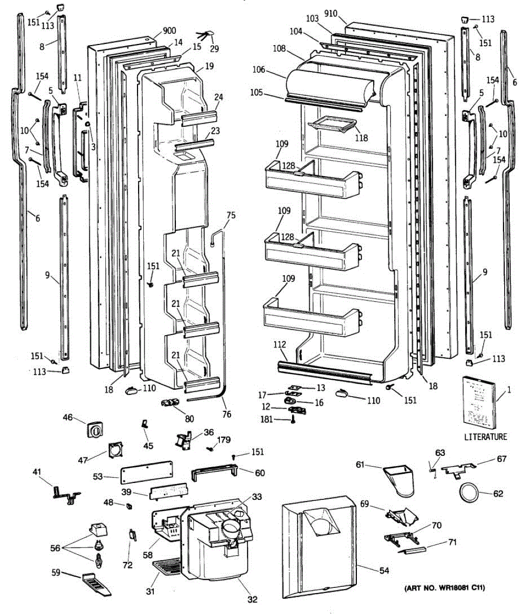 Ice dispenser door assembly seals the ice chute opening on your refrigerator. Replace if cracked, warped, or the rubber gasket is damaged and leaking air.