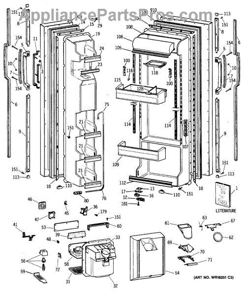 The Ice Door Assembly is an OEM part for GE refrigerators. It is integral to the ice dispenser system, controlling access to the ice chute. This component ensures the efficient delivery of ice cubes or crushed ice when activated and seals off the chute when not in use to maintain the freezer's temperature and prevent frost buildup.