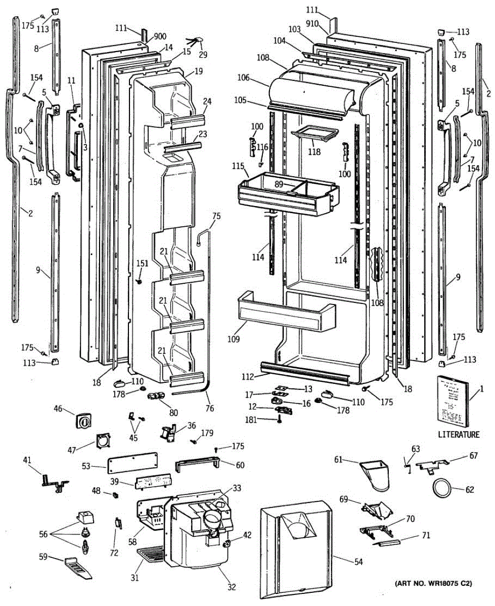 Ice dispenser door assembly seals the ice chute opening on your refrigerator. Replace if cracked, warped, or the rubber gasket is damaged and leaking air.